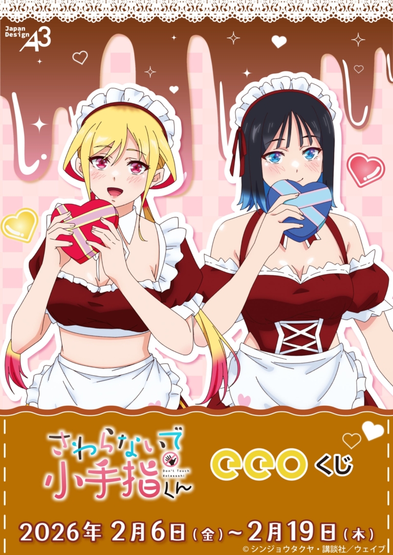 2025年10月にTVアニメが放送された、人気作品『さわらないで小手指くん』。同作のオンラインくじ「eeoくじ」が、2026年2月19日(木)まで通販サイト「eeo Store online」にて発売中です! 景品となる新作グッズには、“メイドバレンタイン”をテーマにした楠木アロマ &北原あおばの描き下ろしイラストや、アニメの場面写が楽しめる公式イラストを使用。さらに購入特典も用意されていますので、この機会にぜひチェックしてみてください! ▼eeo Store onlin…