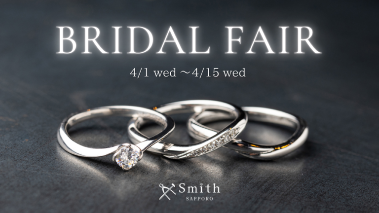 札幌の手作り結婚指輪・婚約指輪「工房Smith札幌本店」が、4月1日よりブライダルフェアを開催。3本セットご成約で貴金属代金とダイヤモンドが15%OFFに!