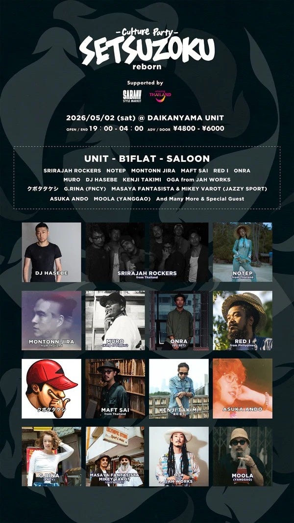 タイ・フィリピン・日本、アジアの音楽シーンが代官山に集結!カルチャー・パーティー『SETSUZOKU』10年振りに開催決定!