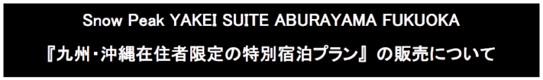 九州旅客鉄道株式会社 「Snow Peak YAKEI SUITE ABURAYAMA FUKUOKA(福岡県福岡市)」では、九州・沖縄在住者を対象とした特別なご宿泊プランを販売いたします。