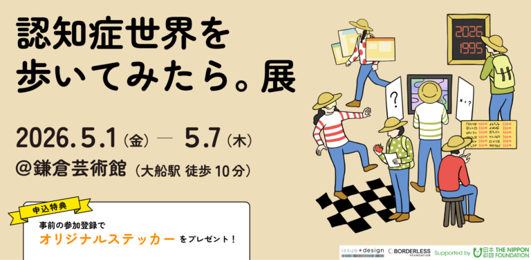 issue+design認知症当事者100人の声から生まれた、”認知症の世界”を体験する日本初の展覧会。今なら事前参加登録でオリジナルステッカーを登録者全員にプレゼント。 「さっきまで何をしていたのかわからない」