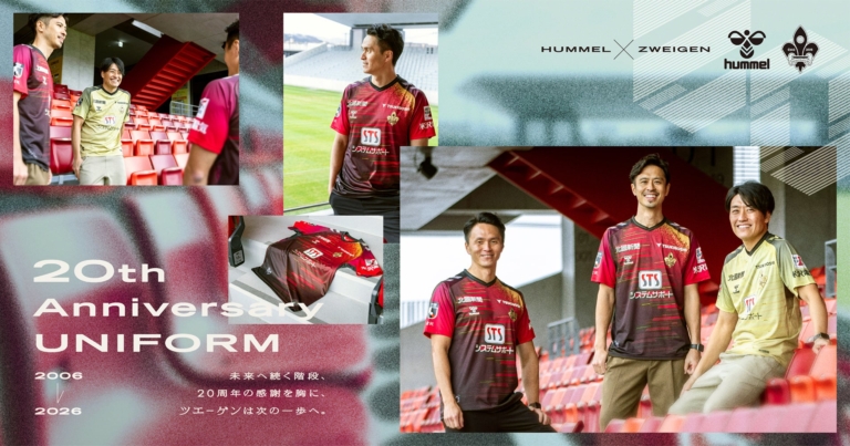 株式会社エスエスケイ1次販売受付は、12/19から1/4まで デンマークのスポーツブランドhummel(ヒュンメル)は、ツエーゲン金沢が2026シーズン「明治安田Jリーグ百年構想リーグ」に着用するユニフォームを発表。クラブ創設20年を記念し、その感謝を表現したユニフォームになりました。 20年の歩みを階段状にデザイン 2026年のJリーグは8月に開幕する2026/27シーズンへのシーズン移行へ向けて、2026年前半は2月開幕の「明治安田Jリーグ百年構想リーグ」が5ヶ月間で開催されます。今回…