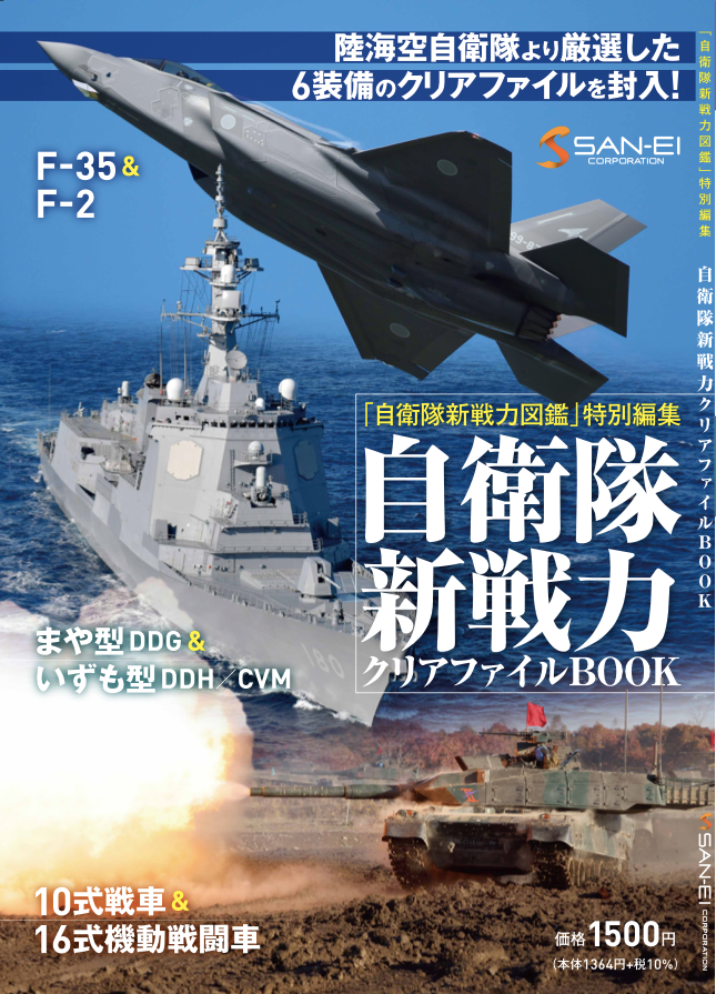 三栄ムックシリーズ「自衛隊新戦力図鑑」の編集部が厳選した両面刷り3タイプのクリアファイルとブルーインパルスの空撮ポスターがついてくる 株式会社三栄(本社所在地:東京都新宿区、代表取締役社長:鈴木賢志)は、2025年12月23日(火)より『自衛隊新戦力図鑑」特別編集 自衛隊新戦力クリアファイルBOOK』を発売いたします。 本商品はムックシリーズ「自衛隊新戦力図鑑」の編集部が厳選した陸上自衛隊、海上自衛隊、航空自衛隊の兵器を両面刷り3枚のクリアファイル化し、クリアファイルに登場する兵器の詳細な紹介…