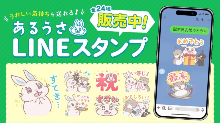 「うれしい気持ちを送れる あるうさLINEスタンプ」の販売を開始しました。 【スタンプダウンロードはこちら】