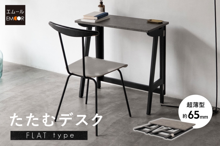 株式会社エムール“寝る・座る・たたむ”に専門性を持つ健康家具ブランドEMOOR(エムール)は、収納時に約65mmまで薄くなる、フルフラット折りたたみデスク【たたむデスク・フラットタイプ】の先行予約販売を開始しました。 たたむデスク・フラットタイプ