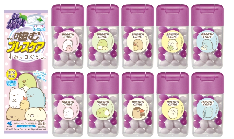 【数量限定】「すみっコぐらし」と『噛むブレスケア』が初コラボ!人気の”すみっコ”が描かれた全10種のパッケージが登場「噛むブレスケア すみっコぐらし グレープ&ヨーグルト」