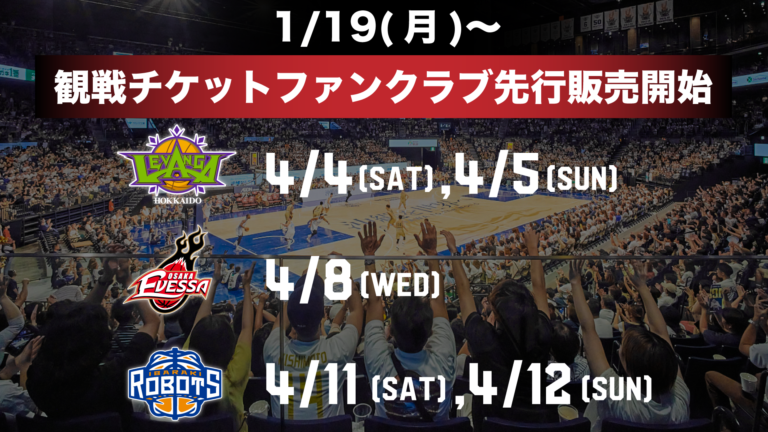 1/19(月)より4月の北海道・大阪・茨城の5ゲームのチケット販売開始!