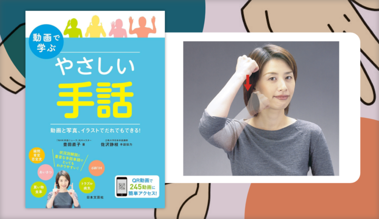あいさつの表現を覚えよう 「おはようございます」 1【朝】 右手を握り、こめかみのあたりからそのまま真下に下げる。「おはよう」の意味もある。 2【あいさつ】 両手の人差し指を立てて向かい合わせ、人差し指を写真のように折り […]