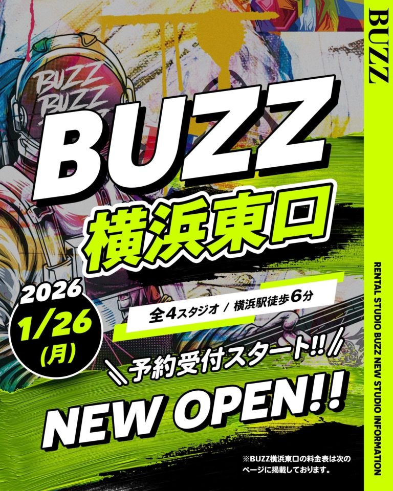 株式会社BUZZ GROUP4スタジオ完備・24時間365日営業で横浜のダンスシーンをさらに加速!撮影・練習・配信に最適な多彩な空間を提供 全国84店舗以上を展開するレンタルスタジオ「STUDIO BUZZ(スタジオバズ)」を運営する株式会社BUZZ GROUP(本社:東京都港区、代表取締役:渡辺 憲)は、2026年1月26日(月)、神奈川県横浜市西区に横浜エリア6店舗目となる「BUZZ横浜東口」をオープンしました。