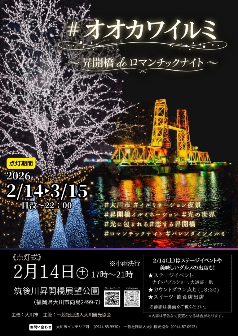 【福岡県】バレンタインに点灯!約3万球が彩る「#オオカワイルミ」が筑後川昇開橋展望公園で初開催
