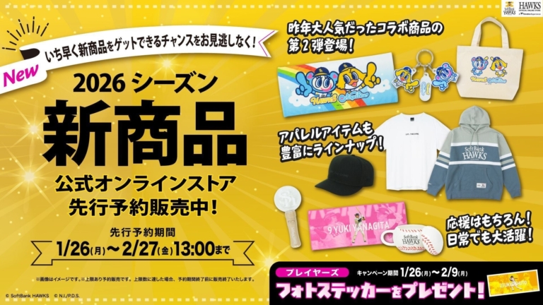 福岡ソフトバンクホークス株式会社公式オンラインストアにて新グッズの一部を先行予約販売開始 2026シーズン新グッズ ラインナップ・発売予定2026シーズン新グッズをシリーズごとにご紹介♪