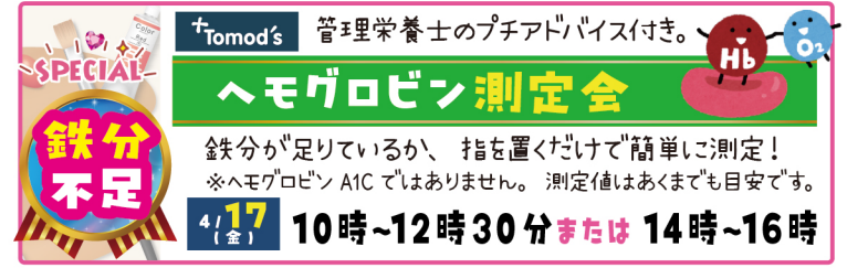 【健康イベント】薬局トモズ練馬高野台店(ねりたかルーム) 4月17日(金)「ヘモグロビン測定会」【参加無料】