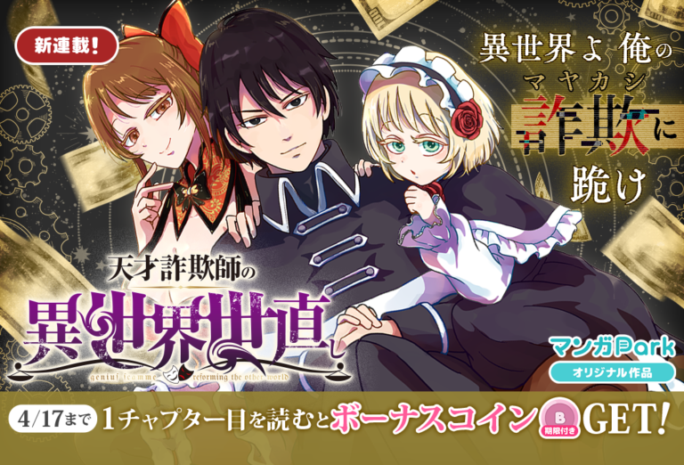 コイン配布の新連載記念キャンペーンも実施!天才いかさま師の異世界世直し冒険譚、開幕!!「天才詐欺師の異世界世直し」4/11~「マンガPark」で連載開始!