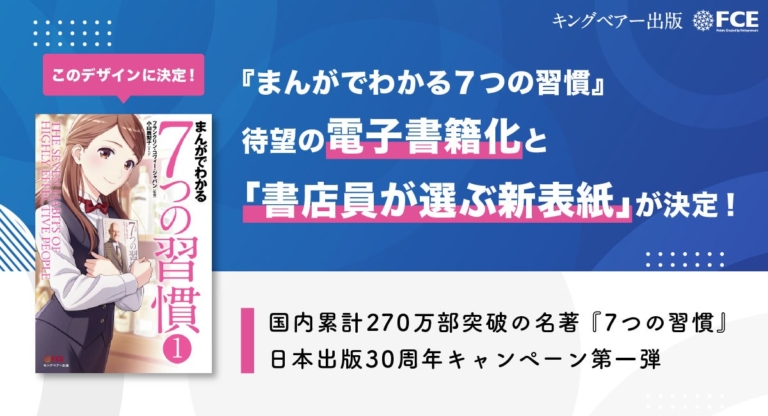 株式会社FCE~第1弾『まんがでわかる7つの習慣』全5巻を電子書籍化、2/27配信開始~ 株式会社FCE(本社:東京都新宿区、代表取締役社長:石川淳悦、証券コード:9564)は、世界5,000万部、国内270万部を発刊する世界的ベストセラー『7つの習慣』の日本出版30周年を迎えるにあたり、「社会と『7つの習慣』を再接続する」記念キャンペーンを開始します。 第1弾として、『まんがでわかる7つの習慣』(全5巻)を初めて電子書籍化し、第1巻を2026年2月27日より主要電子書店で配信します。あわせ…