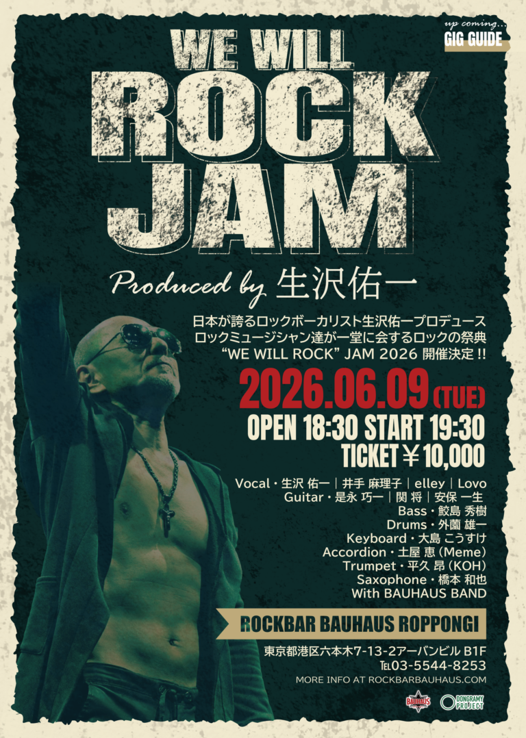 生沢佑一プロデュース&ボーカル『WE WILL ROCK JAM 2026』6月9日開催決定!日本を代表するロックボーカリスト 豪華ミュージシャンが集結!