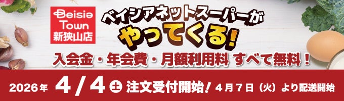 株式会社ベイシア~ 狭山市の世帯数の80%以上をカバー ~ 株式会社ベイシア(本社:群馬県前橋市、代表取締役社長:相木孝仁)は、楽天グループ株式会社(以下「楽天」)が提供するネットスーパーのプラットフォーム「楽天全国スーパー」内に出店する「ベイシアネットスーパー」において、3月25日に開業した新フォーマット1号店となる「Beisia Town 新狭山店」からの配送を2026年4月7日(火)より開始いたします。 ベイシアは、リアル店舗の強みを活かして約20,000点にのぼる商品をご提供し、ネ…