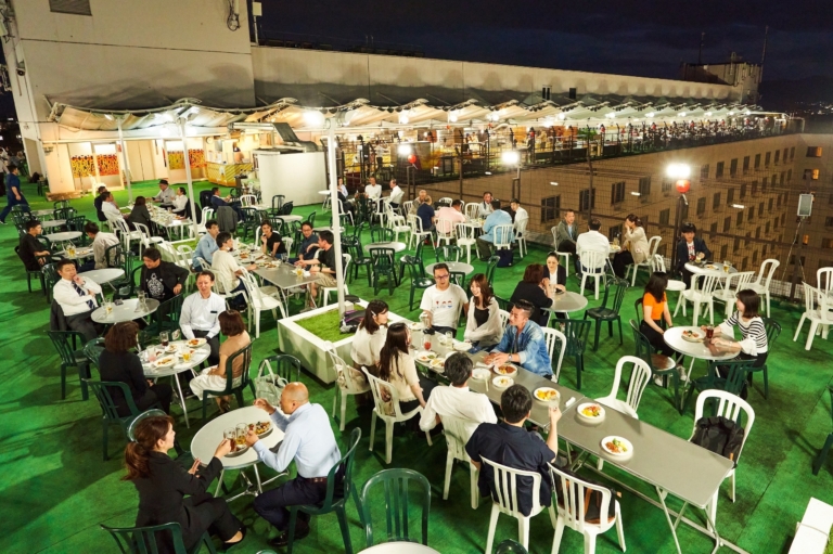 京都駅前の好立地に位置し、美しい京都の山々とトレインビューを同時に楽しめる自慢の屋上は、開放感も抜群!今年は「夏祭り」をテーマに、定番の人気メニューに加え、毎月変わる鉄板焼きメニューなど豊富なお料理とドリンクをご用意しています。お仕事帰りにも家族との時間にも、京都駅前で夏祭り気分をご満喫ください。