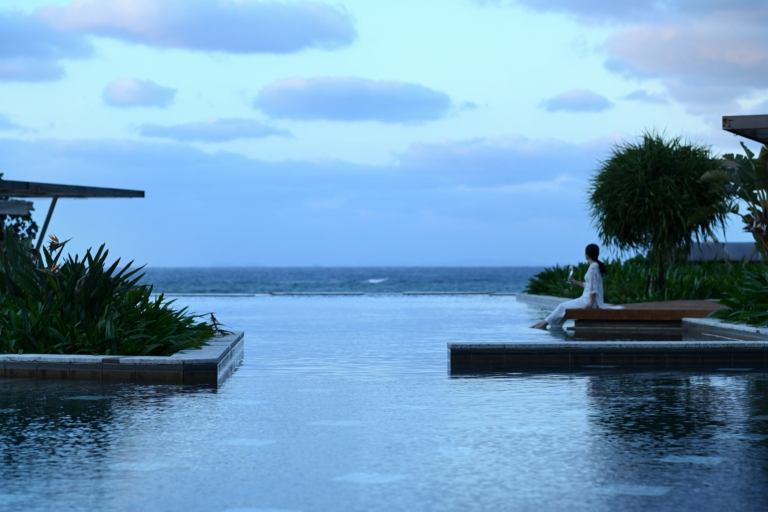 星野リゾート~アジアで唯一のブルーゾーンに認定された沖縄の、健康と長寿の秘訣を先人の教えから学び、明日への活力に繋がる、新たなスタイルへとリニューアル~ 海を臨むインフィニティプールで寛ぐひととき