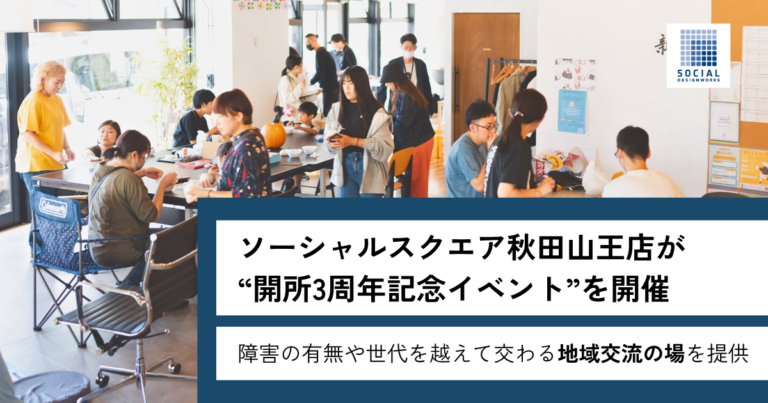 特定非営利活動法人ソーシャルデザインワークス障害の有無や世代を越えて交わる地域交流の場を提供 特定非営利活動法人ソーシャルデザインワークス(本部所在地:福島県いわき市、代表:北山剛)が運営する障害福祉事業所「SOCIALSQUARE 秋田山王店」(秋田県秋田市)は、開所3周年を記念し、2026年4月4日(土)に地域交流イベント「ごちゃまぜ春フェス Vol.3」を開催します。 障害の有無・年齢・国籍などの違いを越えて人が交わる「ごちゃまぜ」をコンセプトに運営してきた同事業所が、3年間の歩みを地…