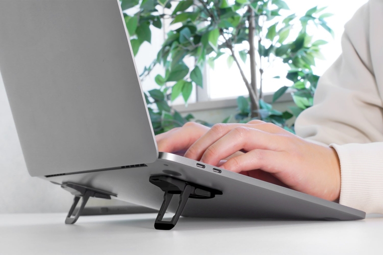 ノートPCに貼り付けたまま使える!3段階高さ調整対応の薄型ミニスタンド「OWL-PCSTD08シリーズ」を発売