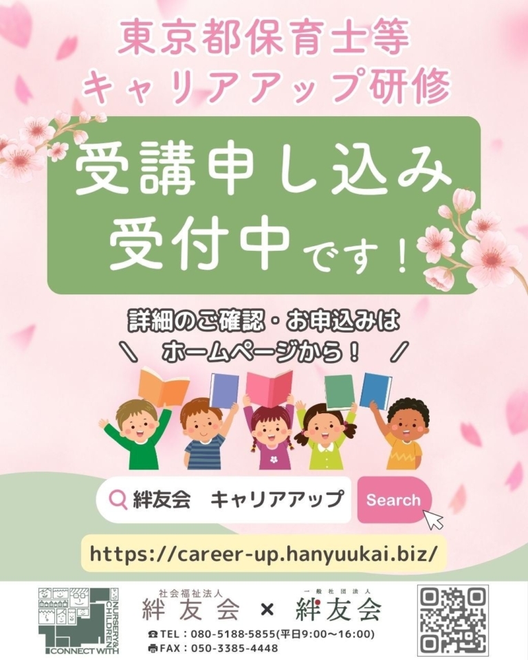 社会福祉法人絆友会年度後半は混雑が予想されるため、修了を目指す方は前半日程での受講を推奨しています。 社会福祉法人絆友会・一般社団法人絆友会(所在地:東京都北区)は、令和8年度 東京都保育士等キャリアアップ研修の日程(集合研修・eラーニング研修)を公開し、受講申込の受付を開始いたしました。 昨年度の受講希望増加を踏まえ、eラーニング定員枠を大幅に増枠しておりすが、定員に達し次第締切のため、早期申込を推奨します。
