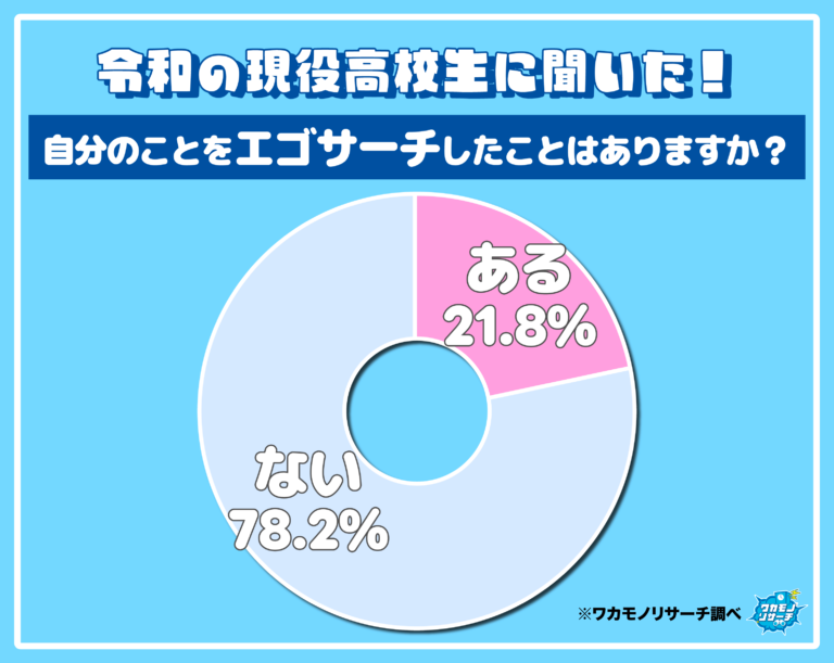 株式会社ワカモノリサーチ令和の現役高校生(男女)に「エゴサーチ」について調査を実施しました。 自分の名前を検索窓に打ち込んで、