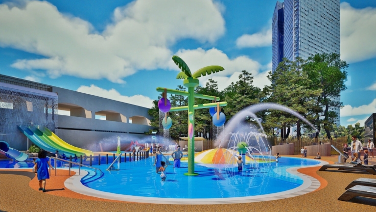【宮崎・シーガイア】滝から滑り出す新スライダー誕生!7/18「スプラッシュエリア」がオープン。宿泊者限定の“水遊び×遊具”の新聖地へ!恐竜ビュッフェ付き宿泊プランも登場