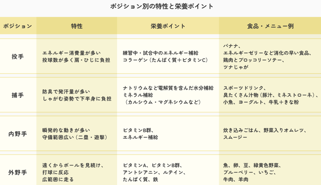 【野球ごはん⑳】ポジション別に意識したい栄養ポイント≪令和版≫