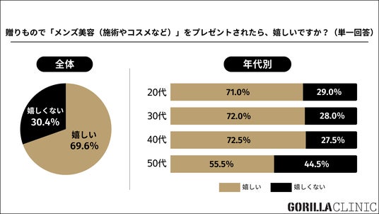 さらに注目すべきは、約7割の男性(69.6%)が美容関連のプレゼントを「もらって嬉しい」と回答している点です。これはホリデーシーズンを中心に男性向けスキンケアや美容アイテムがギフトとして浸透しつつある現状を反映しており、家族やパートナーとの間で美容を共有する文化が広がりつつあることを示しています。