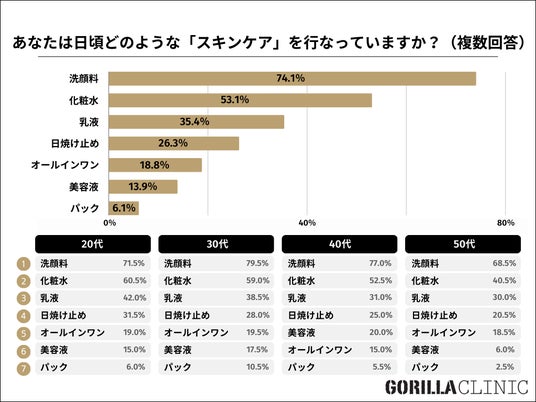 質問:あなたは日頃どのような「スキンケア」を行なっていますか?(複数回答)