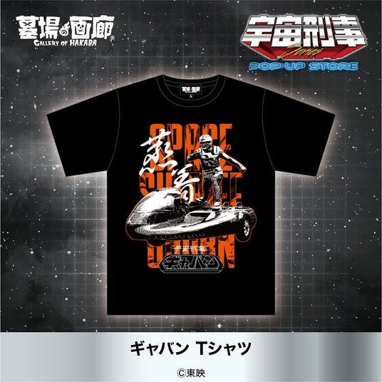 今回は『宇宙刑事シリーズ』として「宇宙刑事ギャバン」「宇宙刑事シャリバン」「宇宙刑事シャイダー」の3作品を取り上げた特別企画として開催!会場内は宇宙刑事シリーズをイメージした、胸のエンジンに火がつく演出が盛り沢山!今回のPOP UP STOREのために新たにデザインされた、Tシャツやキャップなどの定番アパレルアイテムはもちろん、人気のアクリルスタンド、キーホルダー、ステッカーや缶バッジなどのコレクターズアイテムが、グランドバースの増幅システムにスパーク!また墓場の画廊ならではのオリジナルグッズが、大帝王クビライの口から続々と生み出されている!