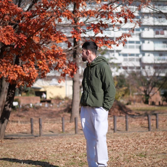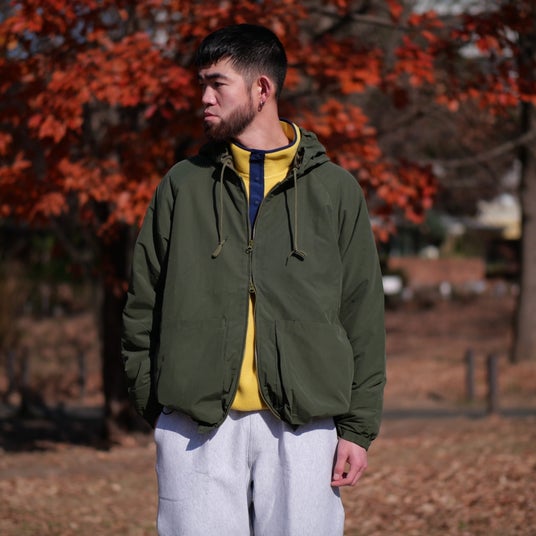 今でこそ”GORE-TEX”に代表されるような防水透湿素材も珍しくないですが、濡れることではじめて撥水機能が生まれる「ロクヨンクロス」は、1960年代の誕生以来、雨風を防ぐ素材として長く愛用されています。街着としても十分な性能を持ちながら、使い込むほど独特の風合いが楽しめるのもポイントです。また、剥離などの生地劣化が少ない点も、長く愛され続ける理由の一つです。