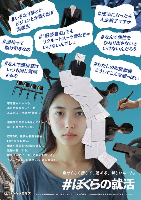 近年、若者の価値観が変化していることに合わせ、より広くアプローチすることを目指し、2024年10月4日、「#ぼくらの就活」に名称変更し、リブランディングを図ります。オフィシャルサイトもリニューアルし、豊富な広告ポスターなどを用意。新たに「社会人サポーター制度」も設け、より手厚いサポートを提供してまいります。