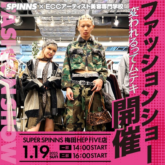 アパレル事業を展開する株式会社ヒューマンフォーラム(本社:京都市中京区、代表取締役会長:出路雅明)が運営するアパレルブランド「SPINNS」は、ECC美容専門学校とのコラボレーション企画『変われるってムテキファッションショー』の第2回目を、2025年1月19日(日)にSUPER SPINNS梅田HEP FIVE店にて開催いたします。