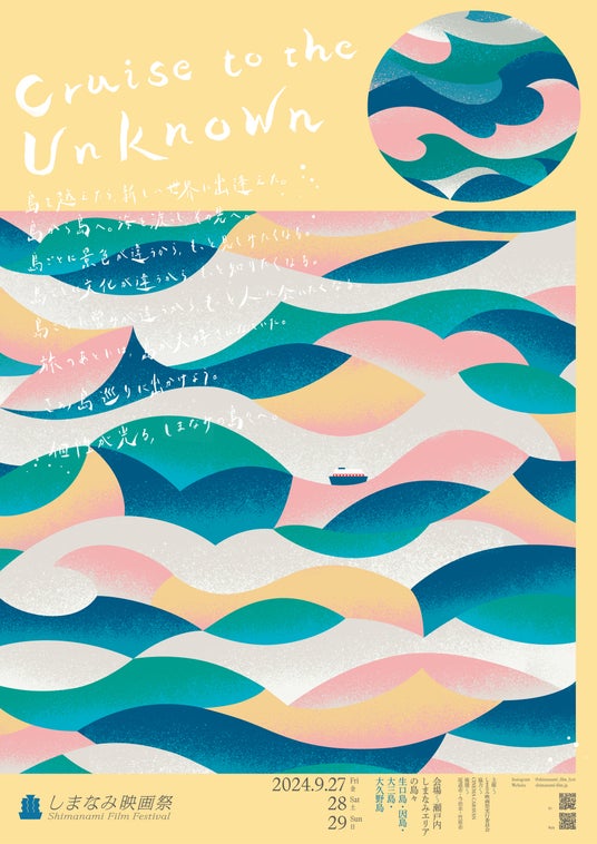 しまなみ映画祭2024しまなみ映画祭は、広島県尾道市と 愛媛県今治市を結ぶ「しまなみ海道」と、その周辺の島々を舞台に、 映画だけではなく、音楽やアート、 食などを楽しめるイベントです。初開催となる今年のテーマは 「Cruise to the Unknown(未知への航海)」。個性の光る4つの島々を巡ることで、 新しい世界に出逢えるきっかけを届けられたらいいなと考えています。