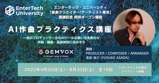 【2025/4/26(土)開講】「AI作曲プラクティス講座」~AIツールを音楽制作に活かそう!本講座は、エンターテック・ユニバーシティの学生だけでなく、AI作曲について本格的に学びたい方は、どなたでも受講可能です。