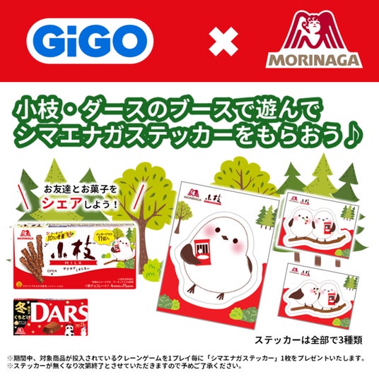 「シマエナガ」オリジナルステッカーをもらおう!「GiGO×森永製菓 ダースと小枝 キャンペーン」開催のお知らせ