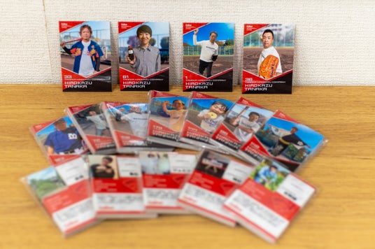 52人52種のタナカヒロカズトレーディングカード第一弾(カルビーのプロ野球カード仕様)の一部