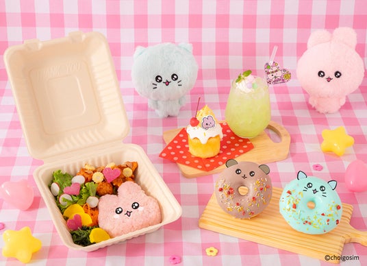 本イベントでは「チェゴシム」の世界観を再現した店内で、メイン3種とごはんの形を4種の“ゴシムちゃん”たちからそれぞれ選べるランチボックスや、3色のクリームを選べるカップケーキ、色鮮やかなオリジナルドリンクなど、食べた人が幸せな気持ちになってほしいという想いを込めた、カラフルでキュートなメニューを提供します。また、描き下ろしアートを使用したオリジナルグッズや特典なども登場します。