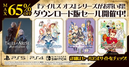 株式会社バンダイナムコエンターテインメントは、PlayStation(R)Store及びニンテンドーeショップにて「テイルズ オブ」シリーズのダウンロード版セールを開催中であることをお知らせいたします。