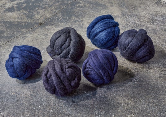 糸になる前の「わた」の段階で染めた濃淡6色の紺色のわたを調合し、一本の糸に紡ぎます。それにより各々6色の持つ長所が混ざり合うことで色に深みが増し、オリジナルの紺無地が完成しました。