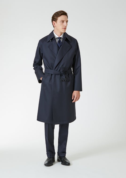 「クインテッセンシャルコート」の素材はクインテッセンシャルスーツと同じオーストラリアメリノ羊毛の中でも繊維が細いSuper120‘s原料を使用。繊細なスーツ地をアウターであるコートに採用するために、表地にはっ水加工、裏面にポリウレタンフィルムをラミネートしています。原料は厳選されたオーストラリア産メリノ種を使用し、紡績から生地の整理加工まで国内で仕上げました。デザインは、「ポール・スチュアート」のシグネチャーコートであるタイロッケン型の通称『クリフォードコート』と、『バルマカーン(ステンカラー)コート』の2型で、誰もが手に取りやすいベーシックなスタイルにこだわりました。縫製はコート専業55 年になる自社工場「サンヨーソーイング 青森ファクトリー」(青森県七戸町)にて行っています。上質なものを長く着用したいと考える男性に向けたこだわりの定番コートです。