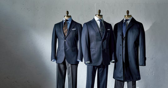 濃淡6色の紺色のわたを用いた深みのある独自の紺生地 ~ 機能性も備えたエレガントなビジネスコート ~