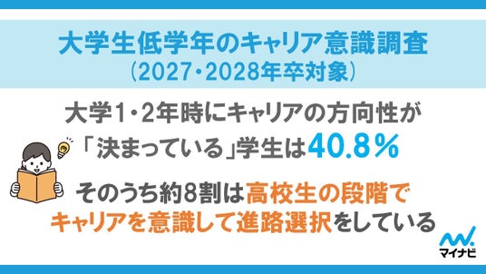 株式会社マイナビ(本社:東京都千代田区、代表取締役 社長執行役員:土屋芳明)は、全国の大学1・2年生を対象に実施した、「マイナビ 大学生低学年のキャリア意識調査(2027・2028年卒対象)」の結果を発表しました。