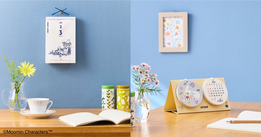 ムーミン・コミックスのアートが365日楽しめる「日めくりカレンダー」と、コースターのような厚みのある紙がかわいい「卓上カレンダー」。どちらもムーミンの世界を楽しみながら1年間を過ごせる、贈り物にもぴったりのカレンダーです。