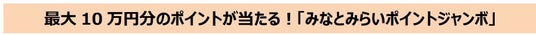 ランドマークプラザ、MARK IS みなとみらいの「みなとみらいポイント」対象店舗にて、3,000円(税込)以上お買上げいただくと、お買上げ金額に応じて最大10万円分の「みなとみらいポイント」が抽選で当たるキャンペーンを開催します。