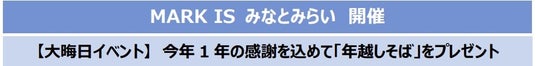 その他、大晦日には年末感謝企画として、「年越しそばプレゼント」や、年始には新春恒例の「福袋」・「グルメ福袋」の販売や「獅子舞演舞」、「書初めパフォーマンス」など、新年ならではのイベントも開催いたします。年末年始はランドマークプラザとMARK IS みなとみらいで楽しく、お得にお過ごしください。