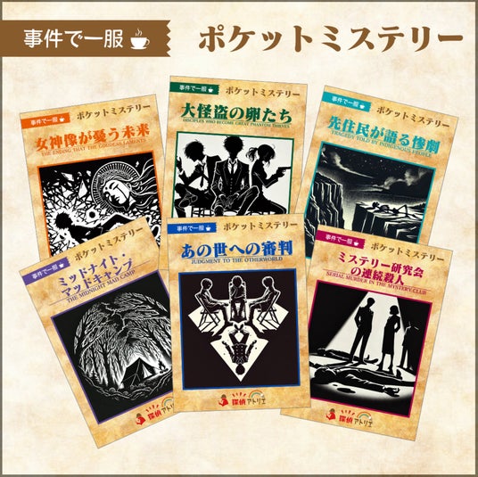 『ポケットミステリー』は、制作レーベル「探偵アトリエ」による、手軽に遊べるマーダーミステリーシリーズです。少人数(3人以下)、短時間(60分程度)、GMレス(進行役なし)という気軽さで、濃厚なミステリー体験を味わえることが魅力。2025年3月時点で、合計6作をリリースしており、今後も順次制作予定です。