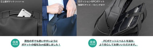 今回の第2弾は防犯性や強度を向上させ、より快適で信頼性の高いリュックとして多くのビジネスパーソンの生活に寄り添える商品に仕上がっています。