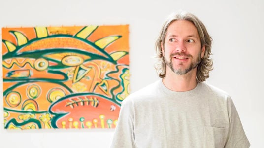 - スウェーデンのアーティスト、クリストファー・クレングレン氏の絵画作品を展示